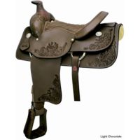 A saddle joint is a synovial joint where one of the bones forming the joint is shaped like a saddle with the other bone resting on it like a rider on a horse. Examples are tennis and golf. The trail rider is offered in 14 to 17 seats in black chocolate or toast suede and finished in medium oil with a leather horn.