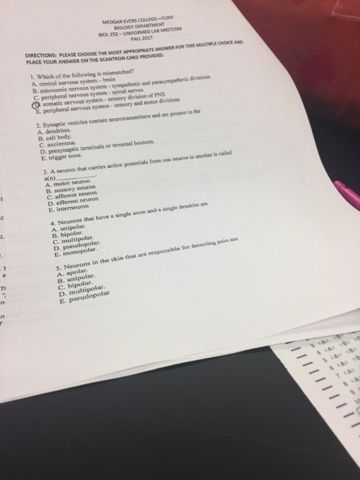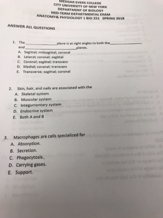 Anatomy And Physiology Midterm Exam 2011 12 Human Body