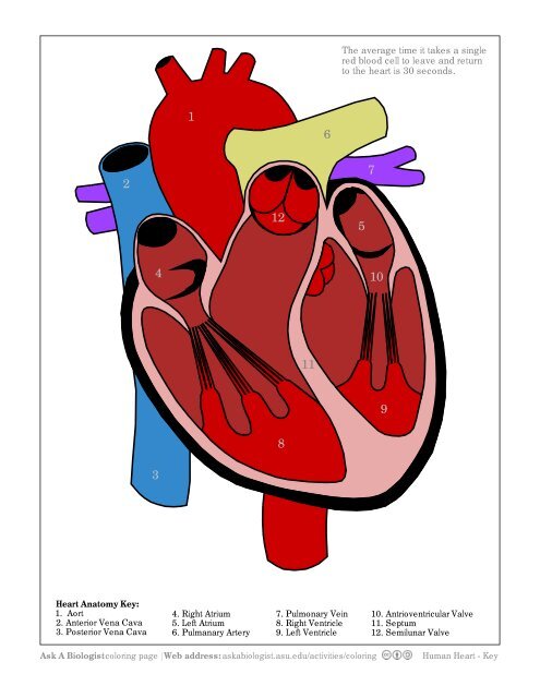 The average time it takes a single red blood cell to leave and return to the heart is 30 seconds. Choose words from the list to complete the sentences below. They will follow the circulation of blood through the valves and chambers of this vital organ and learn the terms for all parts of the heart.