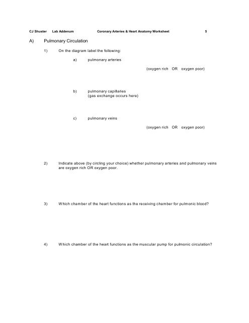 Coronary Arteries Heart Anatomy Worksheet