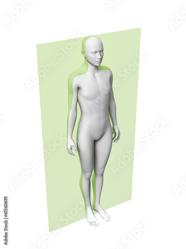 Any of the vertical planes passing through the body from the head to the feet perpendicular to the sagittal planes. In essence this plane intersects the median plane at a 90 degree angle and therefore splits the body into front and back halves. The sagittal plane or median plane longitudinal anteroposterior is a plane parallel to.
