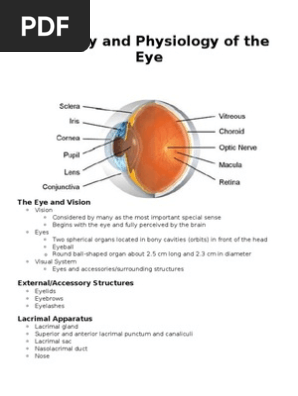 The anatomy and physiology of the human eye is an important part of many courses eg. Anatomy and physiology of the eye the eye is the organ of the visual system and responsible for processing visual detail.