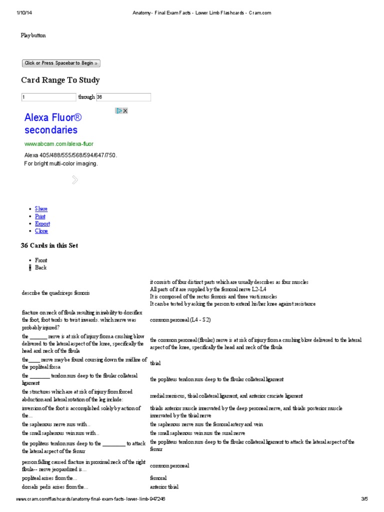 Anatomy Final Exam Facts Lower Limb Flashcards Cram