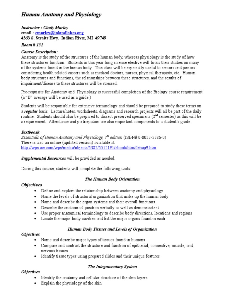 Biology 201 Human Anatomy And Physiology Lecture Notes