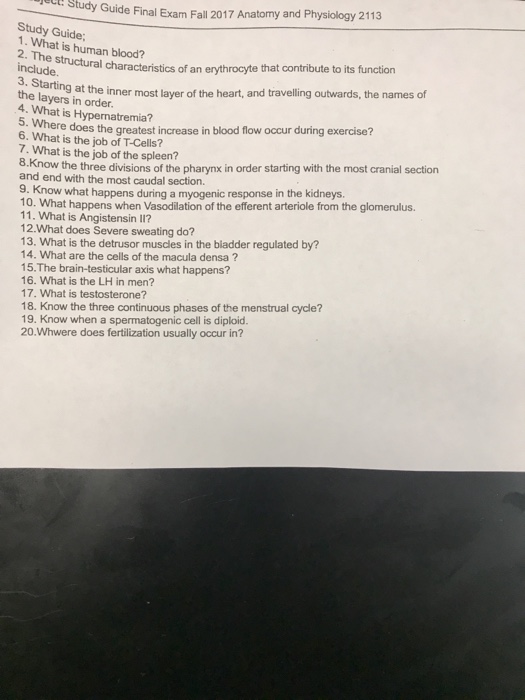 Learn final exam study questions anatomy physiology with free interactive flashcards. Anatomy and physiology final exam. Choose your answer to the question and click continue to see how you did.