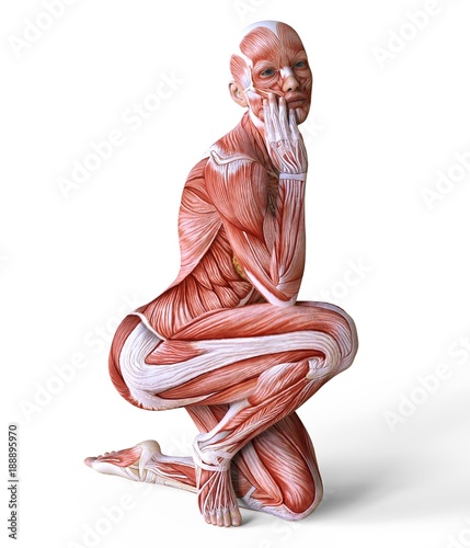 Female anatomy muscles. 3d rendering of a female figure with muscle maps isolated on white background. The human vagina and other female anatomy. Papanicolaou smear pap smear.