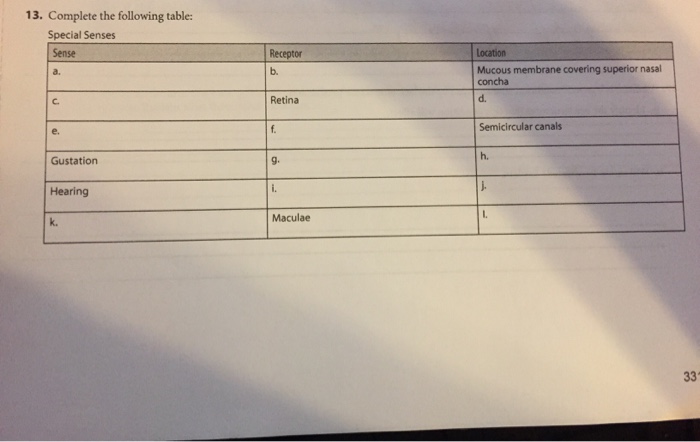 Solved 13 Complete The Following Table Special Senses S